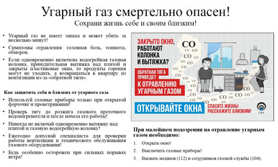 Перед включением и во время использования газовой плиты всегда открывайте форточку. Горящий газ сжигает кислород, поэтому необходим постоянный приток свежего воздуха в помещение. 3. Регулярно проверяйте наличие тяги в вентиляционном канале, проверяйте дымоходы. Неработающая вентиляция и отсутствие тяги в дымоходе – это угроза безопасности. 4. При запахе газа срочно покиньте помещение и позвоните 104 или 112. Не пользуйтесь электроприборами, не включайте и не выключайте свет в помещениях, где может быть газ. Берегите себя и пользуйтесь газом безопасно! | |